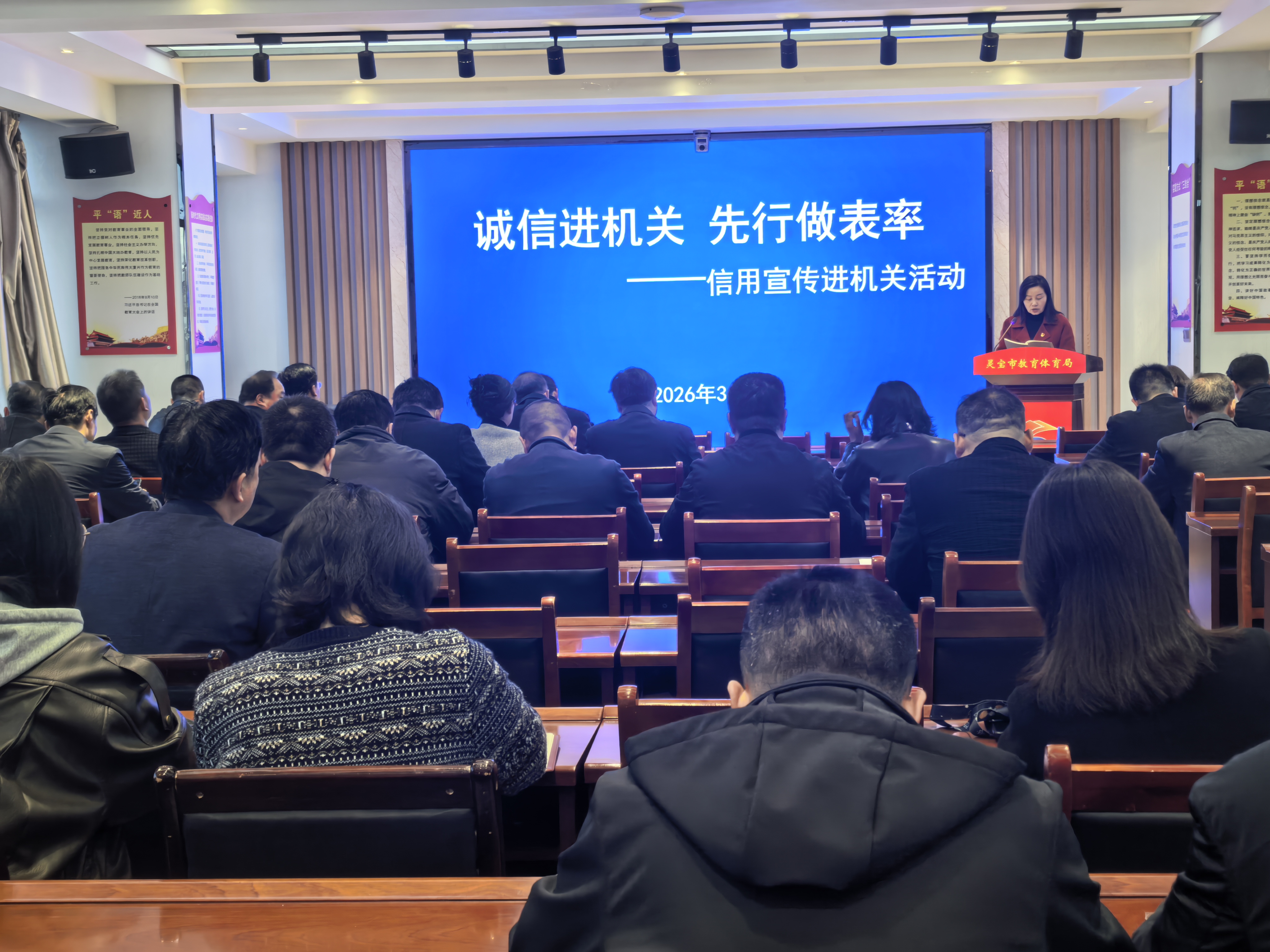 教体局召开诚信宣传会议,会议提到要做好政务诚信、商务诚信、社会诚信和司法公信等重点领域建设任务。机关工作人员要带头学习、带头遵守、带头践行,将诚信理念内化于心、外化于行。